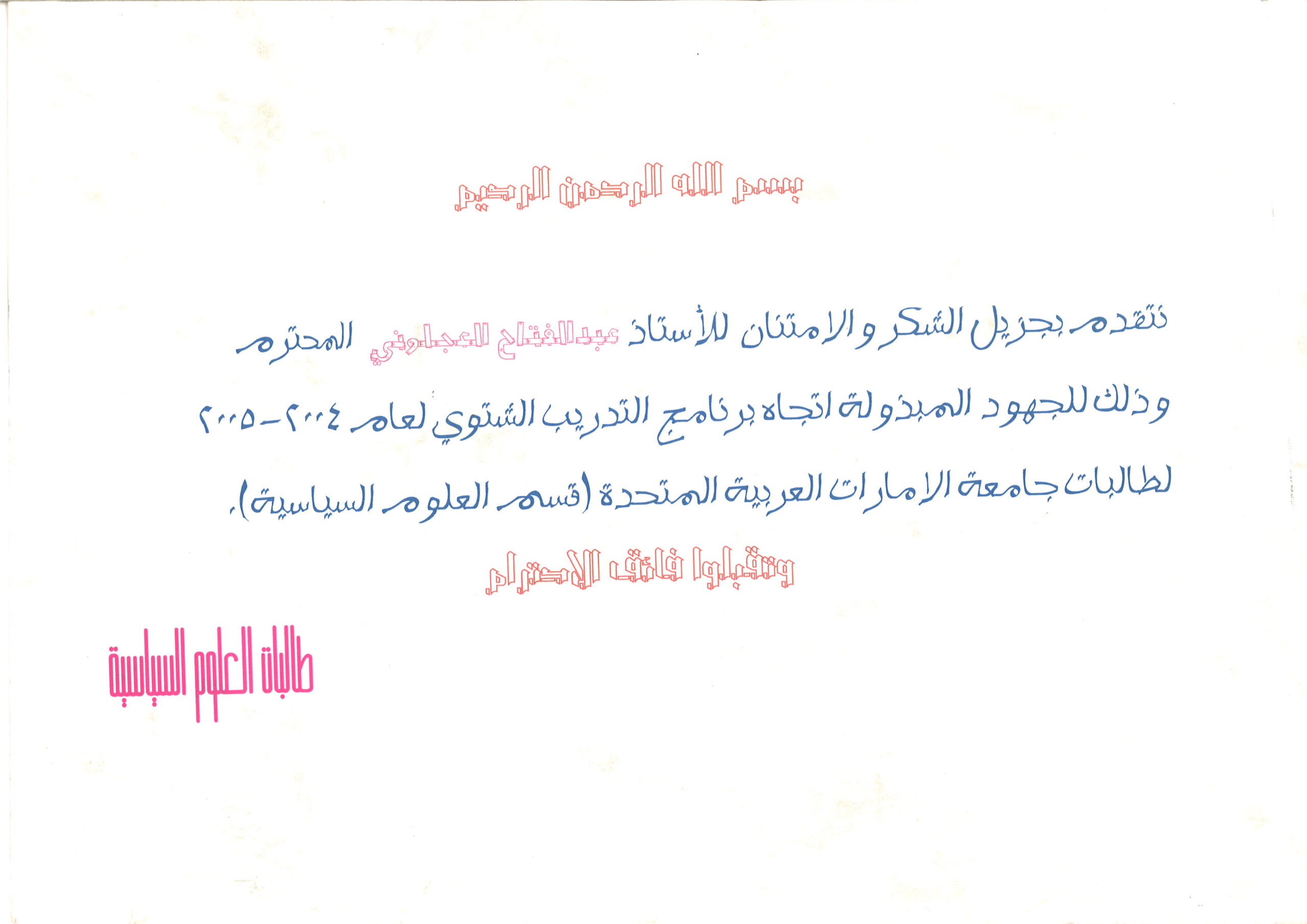 we are proud of the Certificates of Appreciation In accordance with the distinguished achievements, fruitful partnerships, and various community and cooperative initiatives, many awards, shields, and certificates of appreciation have been collected during my career, and this is a sample of them.